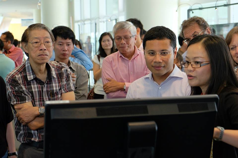 I worked on the IT applications for the centerpiece map for this exhibition, and here, I demonstrated how it works to then MOS Desmond Lee (Credits: Ang Hock Chuan)